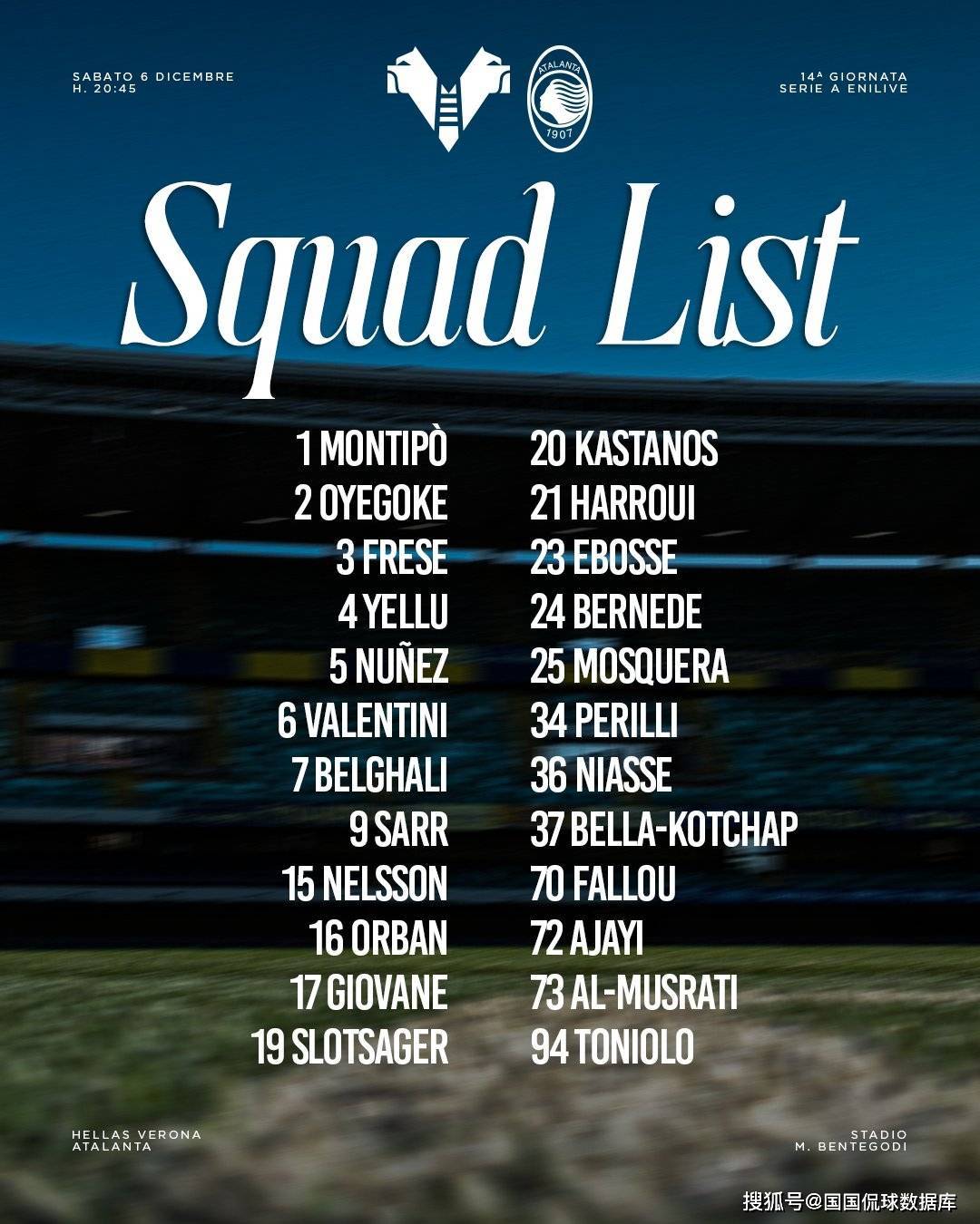 而维罗纳这边频繁地阵容调配,也让球员的状态继续下滑,最近一个月,他们只拿到了一个一分,其他的全都输掉了,面对保级兄弟也是直接送温暖,场均后防失误更是达到了6.3次,原本维罗纳的主场氛围其实也是他们抢分的利器,但今天有一个不能忽视的问题,就是伤病。